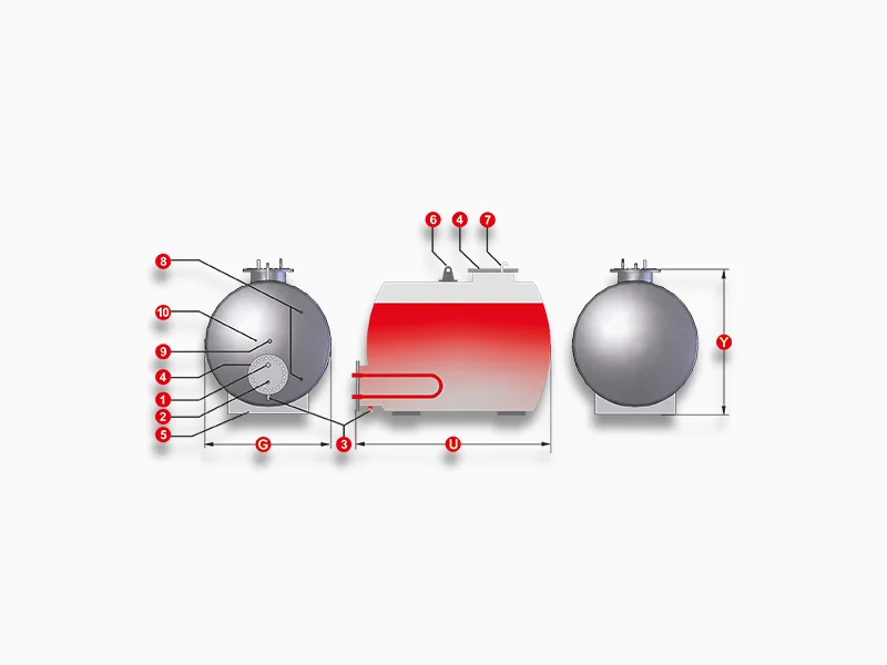 Tankın içərisindəki qidalandırıcı su qızdırıcı spirallar vasitəsilə qızdırılır.