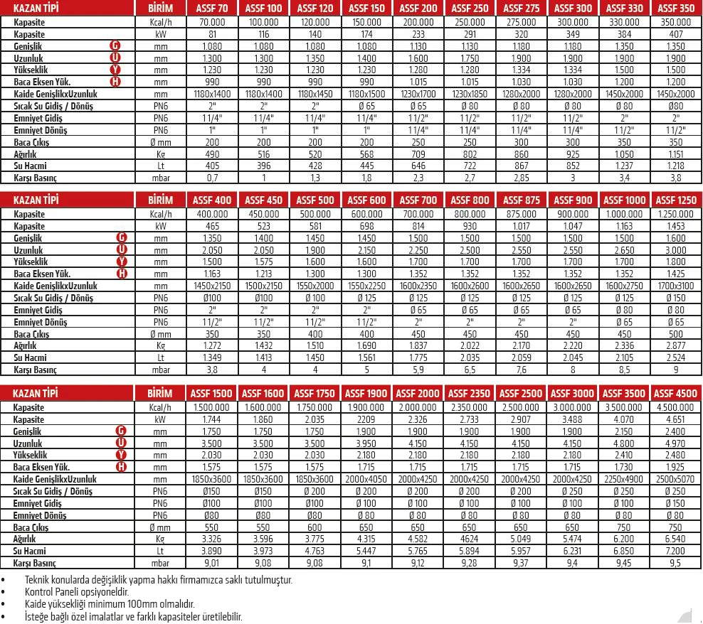 • 40.000 kkal/saatdan 10.000.000 kkal/saata qədər olan tutumlar üçün dizayn və istehsal mümkündür.