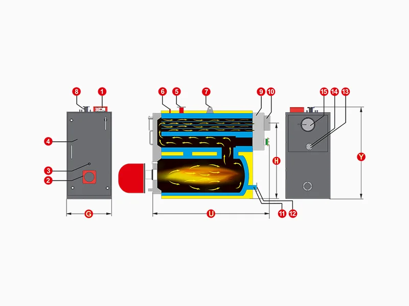Güclü üç mərhələli yanmanın baş verdiyi yanma kamerasında əmələ gələn parlaq alov, “radiasiya istilik ötürülməsi” yolu ilə yüksək miqdarda suya ötürülür.